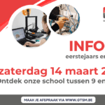 Ontdek GTSM tijdens onze infodag voor toekomstige eerstejaars en derdejaars! Op zaterdag 14 maart 2026 zetten we onze deuren wijd … Lees meer