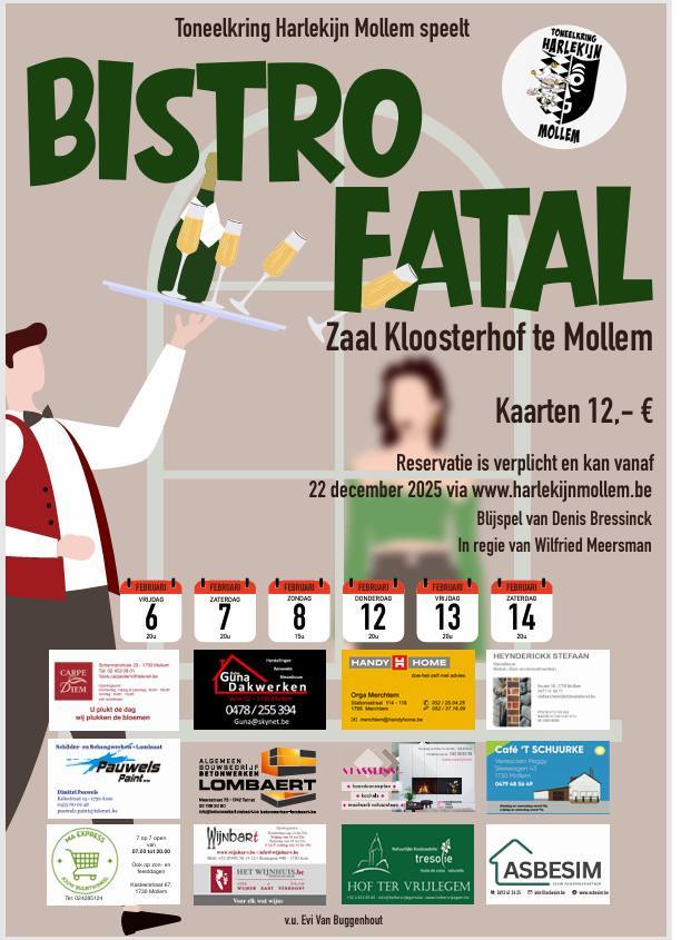 ASSE - Een nieuw jaar is gestart en dat wil zeggen dat ze bij Toneelkring Harlekijn in Mollem al duchtig aan het repeteren zijn voor een nieuwe voorstelling. Daarnaast wordt er deftig geknutseld aan het decor want ‘Bistro Fatal’, een blijspel van Denis Bressinck, komt eraan!