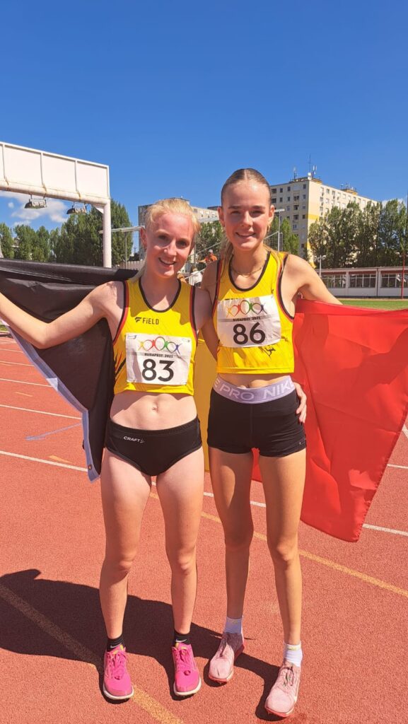 Fien Van Schuerbeeck (rechts op de foto), leerlinge aan de tuinbouwschool in Merchtem en lid van atletiekclub Pegasus, werd geselecteerd op basis van haar sterke tijden op de 800 meter (2:20) en de 1500 meter (4:51). Ze was de jongste deelneemster op de 800 meter en eindigde knap zesde in 2:21. Op de 1500 meter behaalde ze een verdiende vierde plaats met een tijd van 4:50. Kort bij het podium dus en volgend jaar gaat ze voor een medaille! (eb)