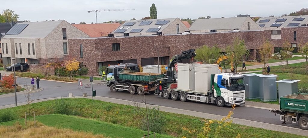 MERCHTEM - De bewoners van Park Puur of Drypikkel en Kerkhofstraat voelen zich in snelheid gepakt bij de aanleg van de eerste sorteerstraat in Merchtem. Maandagmorgen 13 oktober werd begonnen met de plaatsing van deze ondergrondse afvalcontainers voor restafval, GFT, PMD, papier, karton en glas.