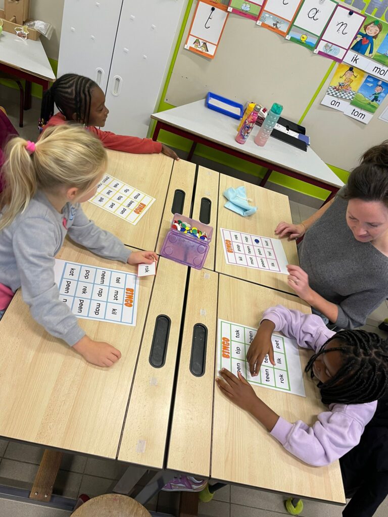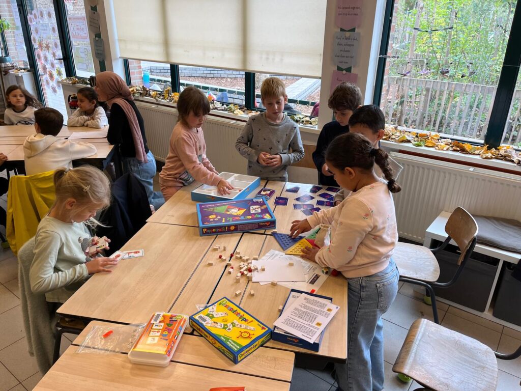 Verder waren er gezelschapsspelletjes met de Nederlandse taal in diverse klassen (PimPamPet, Pictionary, Wie is het,…). Het zesde leerjaar nam het lied ‘Ruimtevaarder’ van Komilfoo onder de loep.