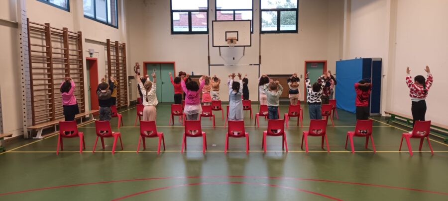 “Tijdens kleuterturnen oefenden we ruimtelijke begrippen. Dichteres Lisa Heyvaert kwam langs in het vijfde leerjaar om aan de slag te gaan met een voorwerp dat elke leerling meebracht. We dachten na over poëzie. Een schimmenspel over de Gruffalo in de 3de kleuterklas zette de verbeelding aan het werk. Daarnaast luisterden de kinderen ook naar een prentenboek.