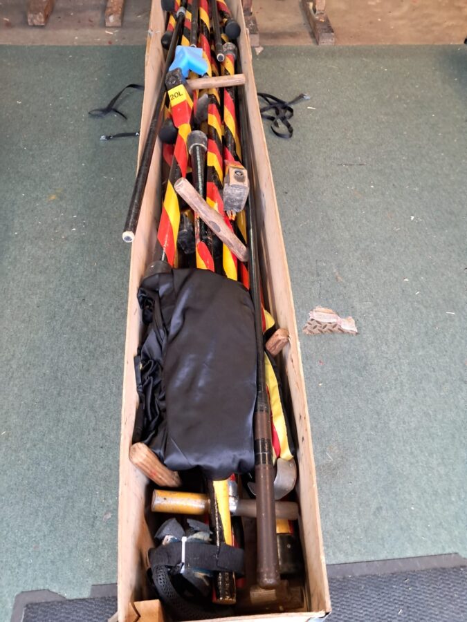 Inmiddels zijn de Merchtemnaren al aangekomen. De stelten waren eerder al verscheept via cargo in een daarvoor speciaal gemaakte koffer. (eb)