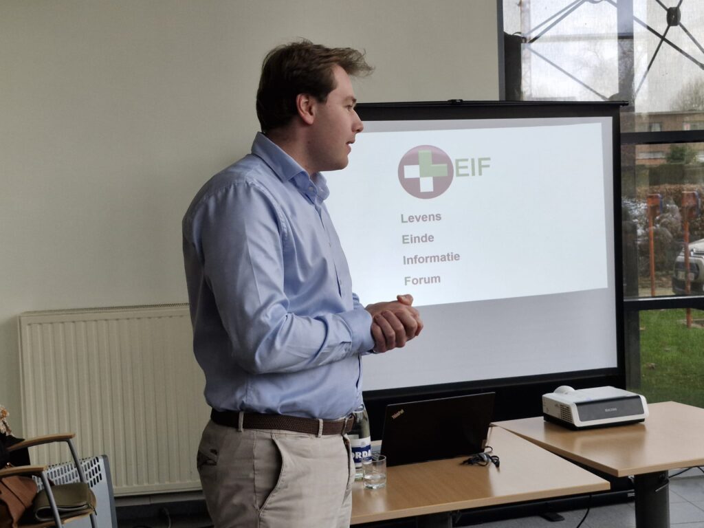 De LEIF-antenne geeft informatie over de Voorafgaande ZorgPlanning en helpt bij het invullen van de wilsverklaring. Schepen van Welzijn Reinhoud de Bosscher (N-VA) leidde de namiddag in en daarna was het aan vrijwillige informatiemedewerker en consulente Annemie Detramasure om LEIF toe te lichten.