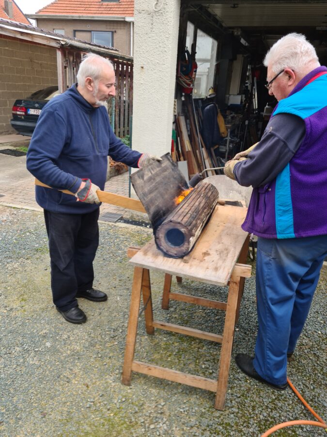 “Vandaag nemen Michel De Keersmaeker en Roger Van Der Slagmolen, twee bekende gezichten uit Brussegem de taken over. En ze zijn er meteen goed ingevlogen. Er werden al twee nieuwe uilenkasten geproduceerd, tien vogelkasten gemaakt én een steenuilkast gerestaureerd en dat allemaal met gerecycleerd materiaal.” (eb)