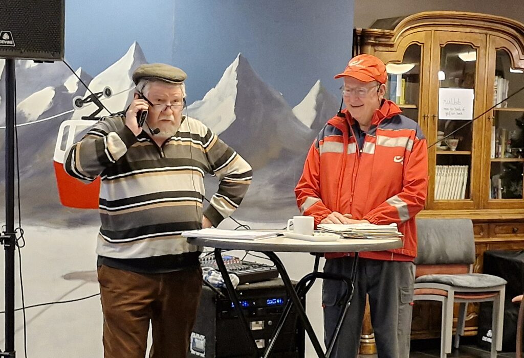 En dat lukte vrij goed en nu al is duidelijk dat de toeschouwers bij de volgende voorstellingen waar voor hun geld gaan krijgen. Zenuwen waren er niet te bespeuren want beiden hebben ervaring met optredens voor een publiek. De leuke gedichtjes van Jean-Paul en de moppen van Eddie volgden elkaar in sneltempo op en dat zo’n twee uur lang. Een verwacht geen poltiek gedoe, maar gewoon vertelselkes en moppen zoals ze aan de toog verteld worden. “Leuke dingen voor de mens!” Gelachen wordt er zeker.