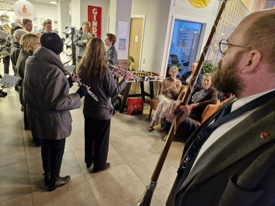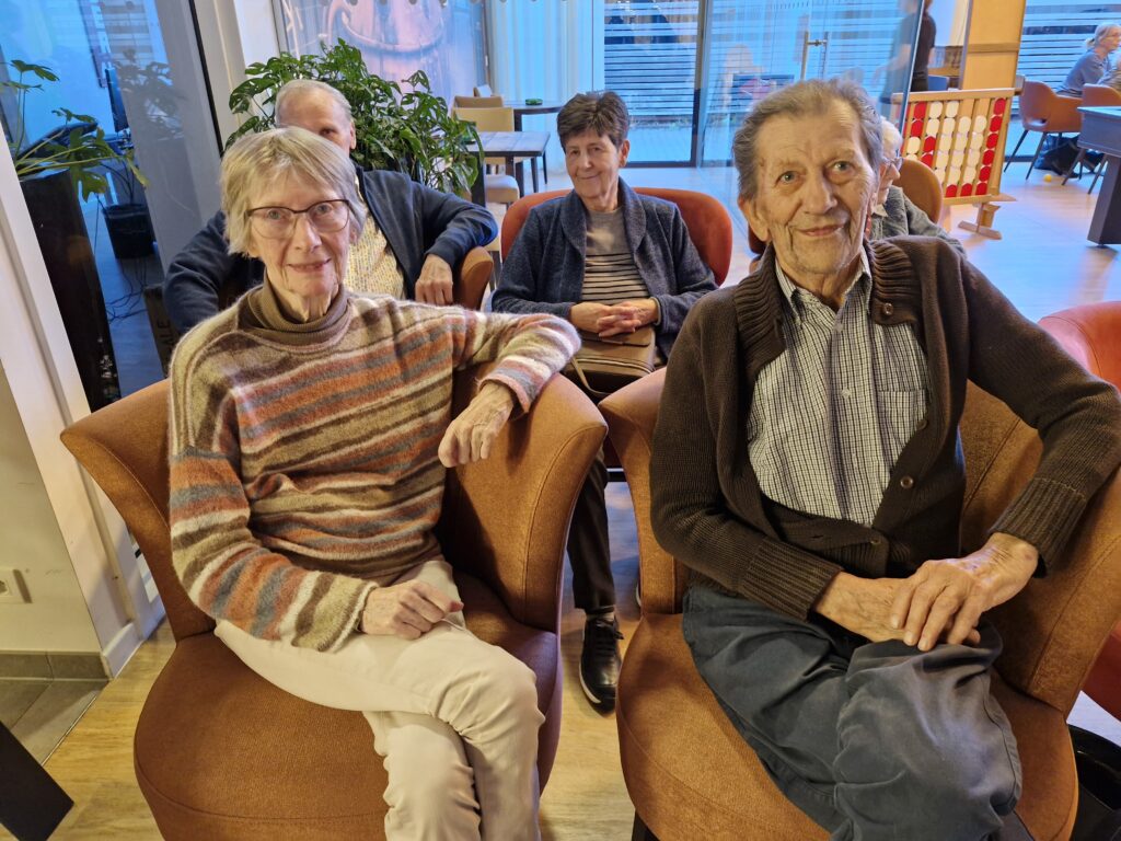 Daarna ging het richting WZC Martinas waar erevoorzitter Jules Seghers en zijn echtengote al een paar maanden verblijven. De cafetaria was er volgelopen en Jules (88) en Jeanine (86) zaten de muzikanten op te wachten. Het was voor de erevoorzitter een blij weerzien met de muziekvereniging die hem zo nauw aan het hart ligt.