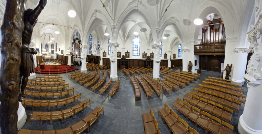 De kruisweg en de grote schilderijen werden niet gerestaureerd, maar wel ‘mechanisch gereinigd’. Alles was gestockeerd bij Object Care in Dendermonde, daar onder handen genomen en door die mensen ook terug opgehangen.
