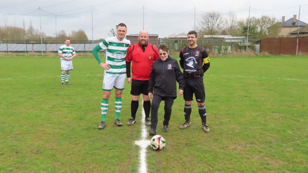 Het ging er bij momenten stevig aan toe, maar ontsporen deed het niet echt. De thuisploeg opende na een kwartier met een rake kopbal van Jeroen Sacré. De jongere thuisploeg leek gelanceerd maar de bezoekers lieten zich tot de rust niet meer verrassen. Daarna werd de gelijkmaker gezocht en die kwam er ook langs Bavo Van Den Broeck. Hij mocht een vrije trap nemen, net buiten de grote rechthoek, en vlamde die, met ook nog een deviatie van een thuisverdediger, mooi tegen de touwen: 1-1.