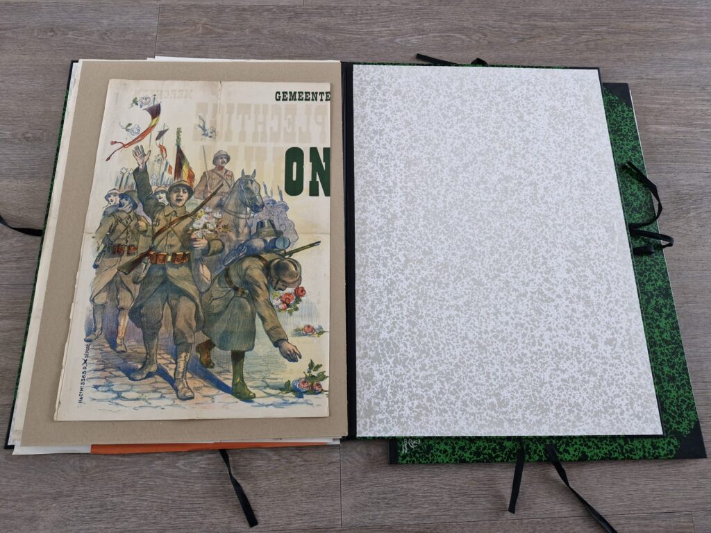 De archivaris maakte zelf een database en vult daar tal van gegevens in over het gescande document. “Ik maak zowel een foto als een pdf. Het loopt echter niet altijd van een leien dakje. Soms is er geen datum te vinden, zitten er roestige nietjes in, passen de documenten niet op de scanner of zijn affiches geplooid, om er enkele te noemen. Als alles uiteindelijk in het Excelbestand staat kan het geklasseerd worden in dozen.