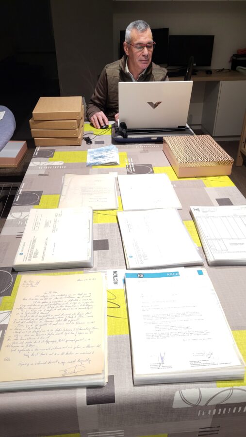 “En dat is nogal wat, van kasten, dozen en ringmappen vol documenten, affiches, foto’s en nog zoveel meer,” aldus Joris, die bijna alle dagen hieraan bezig is, soms ook met de hulp van zijn vrouw Claire Heyvaert. “Dat alles zit ook op verschillende locaties, maar het werk vordert en ik hoop er tegen 2030 mee klaar te zijn.”