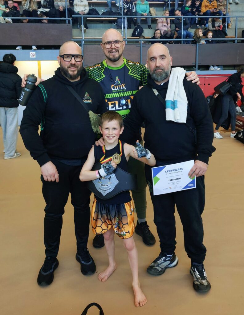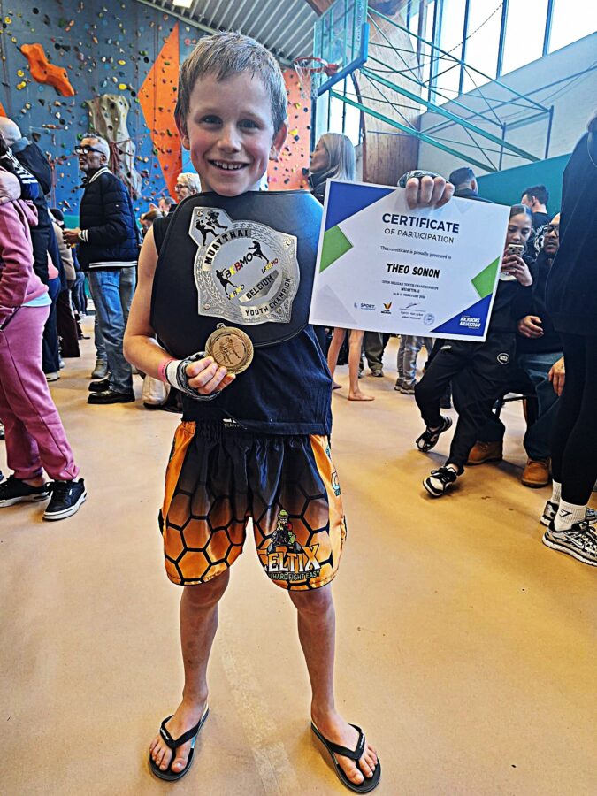 MERCHTEM / OPWIJK - Dat bij Celtix Gym in Opwijk kampioenen worden gekneed of er trainen is een open deur intrappen. Dat was trouwens ook duidelijk op het boksgala in december in Merchtem. En het begint al op jonge leeftijd. Zie maar naar Theo Sonon, die is nog maar tien en toch wist hij halfweg februari in Turnhout al de Belgische titel te behalen bij de Muay Thai Jeugd.