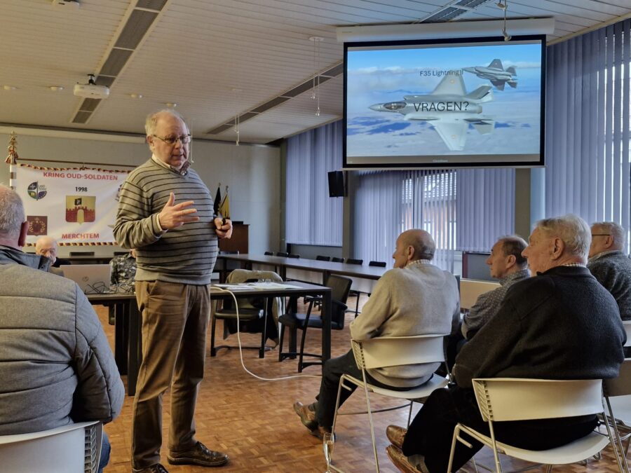 Het bestuur had ook voor een gastspreker gezorgd, namelijk luitenant-kolonel b.d. Geert Tamsyn. Hij gaf een interessante voordracht over het nieuwe gevechtsvliegtuig van het Belgisch leger, namelijk de F35 Lightning II.