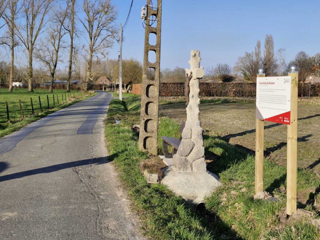 Het is precies als nieuw! Dat monument ter nagedachtenis van Florentina De Donder, een zestienjarig meisje dat in 1894 werd vermoord, was de laatste maanden fel in verval geraakt. Regen en wind hadden hun werk gedaan met enkele serieuze en minder grote scheuren tot gevolg. Een paar jaar geleden was het kruis ook al eens verplaatst geweest want het stond in feite tientallen meters van de straat, midden in het veld, waar ooit een voetweg was en de moord was gebeurd.