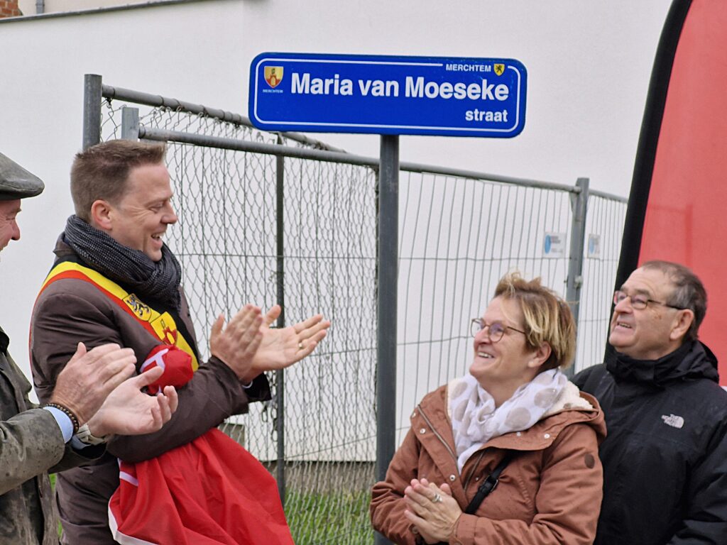 Burgemeester Maarten Mast (LvB) liet in zijn speech verstaan dat het project een snel verloop had gekend. “Bij de vraag voor een straatnaam werd er gekeken naar een vrouwennaam en kwamen we, samen met de Heemkring Soetendaelle, al vlug uit bij de naam van Maria Van Moeseke, een vrouw die bijzonder veel verdienste had voor de gemeente. Zij was de drijvende of stimulerende kracht voor heel wat verenigingen en organisaties. Dit straatnaambordje is overigens het eerste met het wapenschild van de gemeente, samen met een kleine Vlaamse Leeuw.”