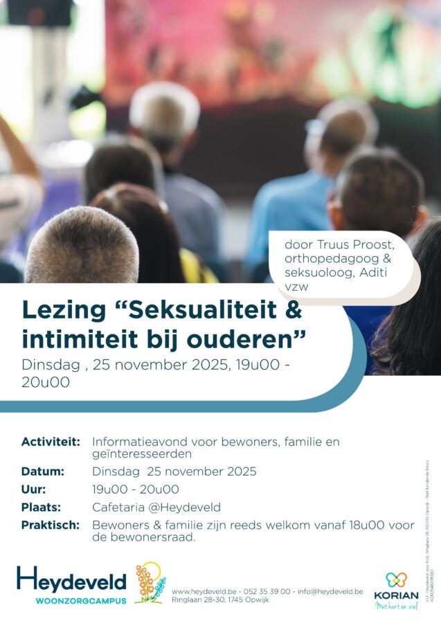 OPWIJK - Op dinsdag 25 november organiseert woonzorgcentrum en herstelverblijf Heydeveld in Opwijk een avondlezing over een thema dat lange tijd onderbelicht bleef: seksualiteit en intimiteit bij ouderen.