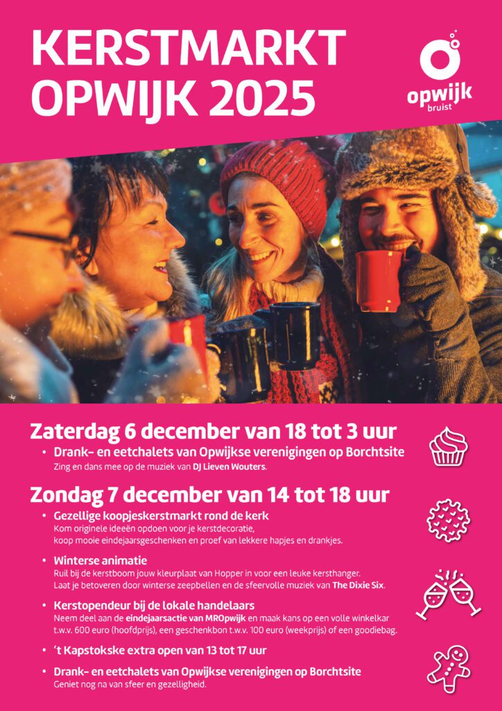 Zaterdag 6 december kan men van 18 tot 3 uur genieten van lekkere spijs en drank bij 24 Opwijkse verenigingen en goede doelen. Je kan hen vinden in de kerstchalets op de Borchtsite, een zone die volledig overdekt is. Kom meteen in de sfeer van de eindejaarsfeesten op de muziek van DJ Lieven Wouters.