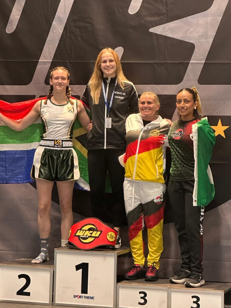 Lauren, in het dagelijkse leven tandartsassistente, traint rechtover haar deur, bij Celtix Gym. Daar traint ze bij Roger Van Audenhove tien of meer uren per week. En dat heeft zijn vruchten afgeworpen. Van Audenhove, die ook de nationale coach is van de kickboksers nam haar op in zijn selectie. Finaal kwam de Belgische delegatie terug met drie gouden, een zilveren en twee bronzen plakken.