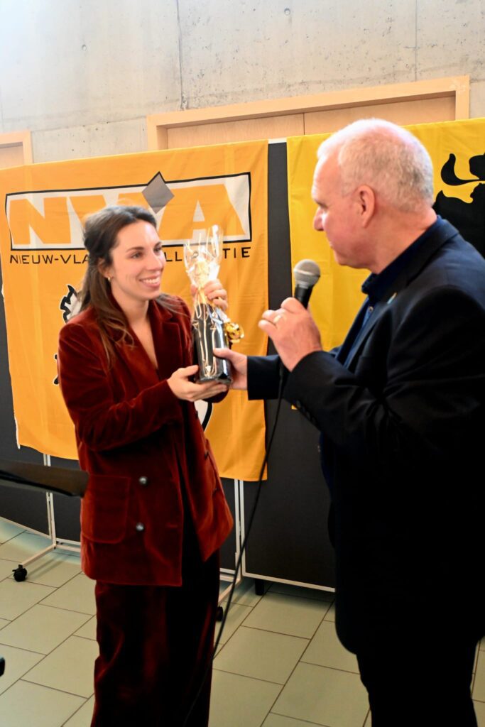 Jan Couck werd eveneens in de bloemetjes gezet om al twintig jaar schepen te zijn. Er was ook een toespraak van N-VA parlementslid en burgemeester van Halle, Eva De Mesmaeker. (eb)
