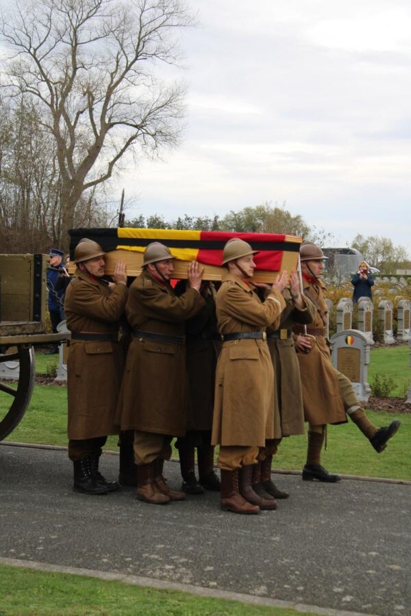 Eric Cobbaert: “Er is veel voorbereiding van onze kant aan voorafgegaan en op zondag 9 november waren we al ter plaatse, om onze drill, het dragen, lossen en laden van de kist in te oefenen. We waren daar ook met onze fouragewagen. Op 10 november waren we weer een ganse dag aan de slag, van de Dodengang in Diksmuide tot de begrafenis in De Panne. We deden veel inspanningen en al het veldwerk, maar veel waardering kregen we daar in feite niet voor!” (eb)