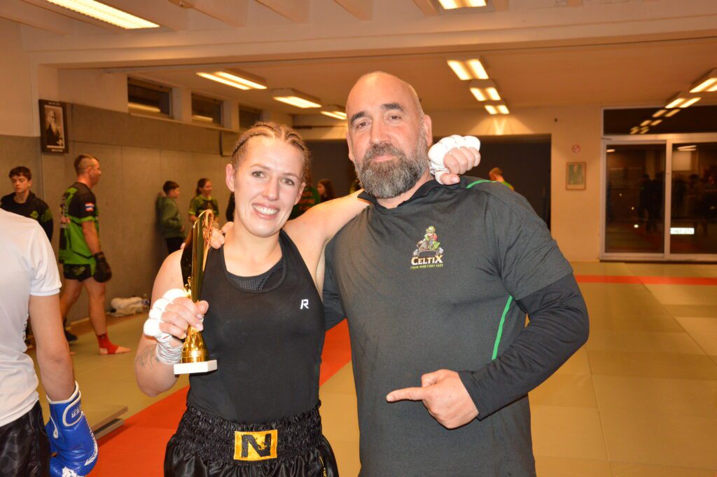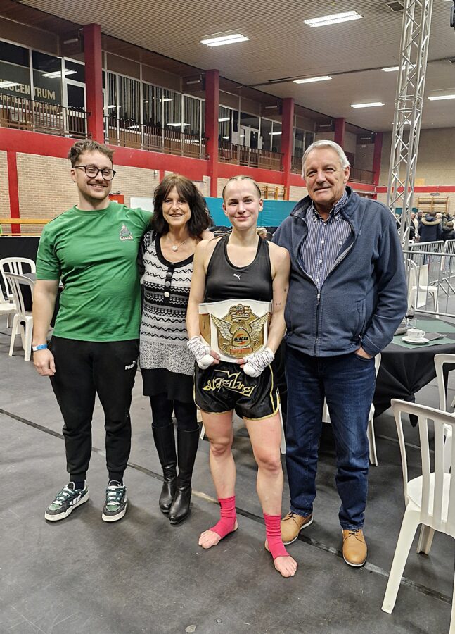 Finaal was er ook het familieverhaal Van Mingeroet-Hermans. Moeder Ellen (44) heeft de smaak van het kickboksen goed te pakken. Ze traint hard en had drie ronden lang de bovenhand. Een duidelijke zege zonder meer en Ellen had gerust nog een tijdje kunnen doorgaan. Dochter Lauren, al twee maanden met de wereldtitel in de -55kg in de achterzak, stapte nu in de ring tegen een Portugese met de Europese titel in die klasse als inzet. Hermans domineerde vijf ronden lang en haalde verdiend haar tweede titel van het jaar binnen. (eb)