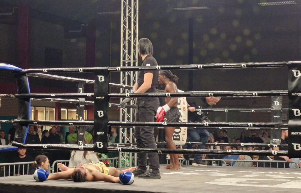 In het tweede deel zagen we een fel gemotiveerde Ryan Dejaen – gesteund door een spionkop – die al in de eerste rond komaf maakte met zijn tegenstander door een hard geplaatste kniestoot. Een flinke jaap onder het oog en einde verhaal. Dolle vreugde bij de Opwijkenaar, na vijf nederlagen op rij!