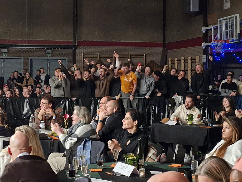 De supporters liepen storm en het was in de buurt van de sporthal ook zoeken naar een plaatsje om te parkeren. Sommige Merchtemnaren vroegen zich af wat er wel aan de hand was? Na de namiddagsessie met jeugdwedstrijden was het ’s avonds dus aan de grotere kanonnen.