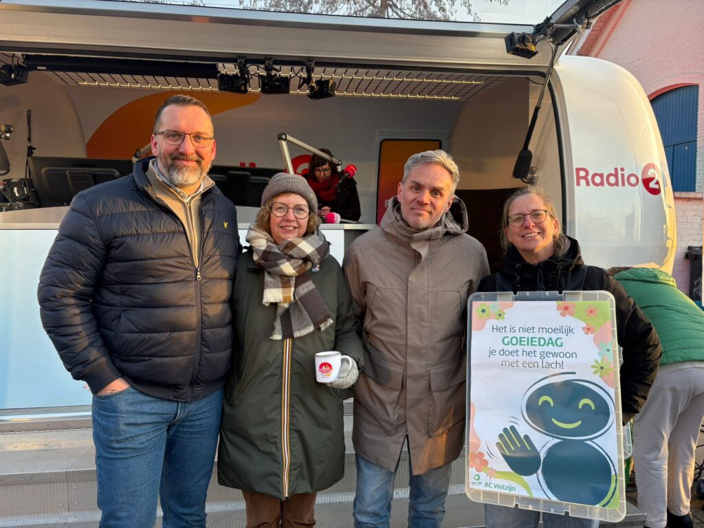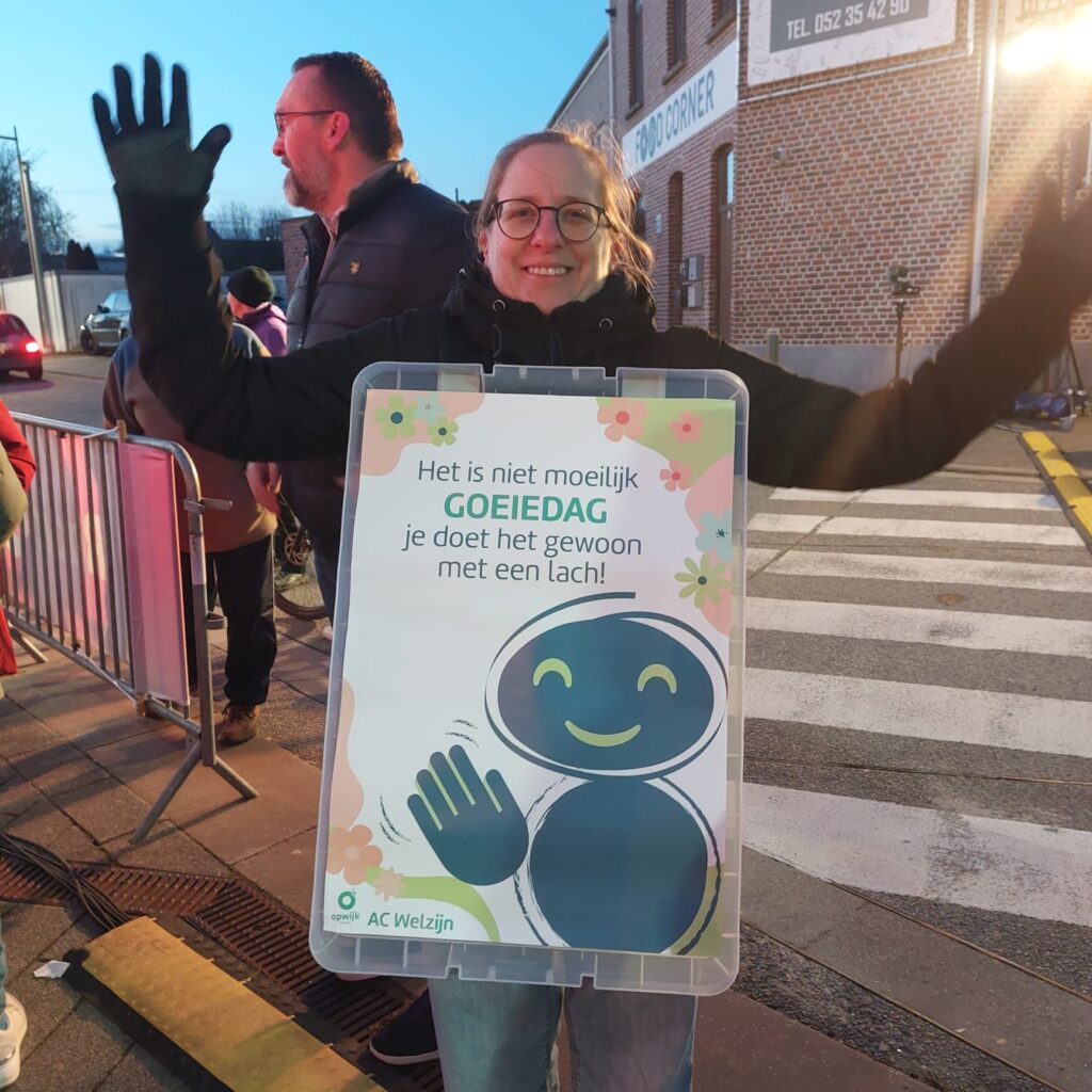 Radio 2 koos niet zomaar voor Opwijk om uit te zenden. Iedereen herinnert zich nog de ‘Goeiedag’-campagne van enkele jaren geleden. Met dit initiatief werden inwoners op verschillende manieren aangemoedigd om elkaar te begroeten met een “goeiedag”. Dat wist ook de presentator en Ineke Segers, welzijnsdeskundige van de gemeente, voor de gelegenheid in een sandwichbord, met affiches van die actie, gestoken, kwam dat initiatief nog een in herinnering brengen. (eb)