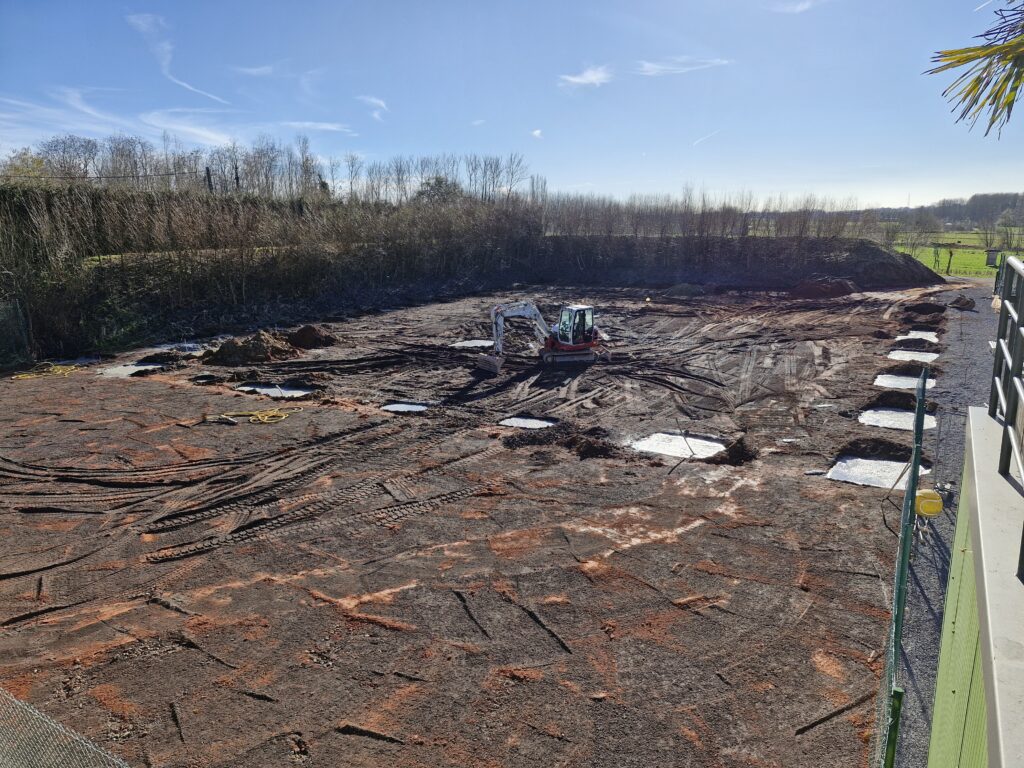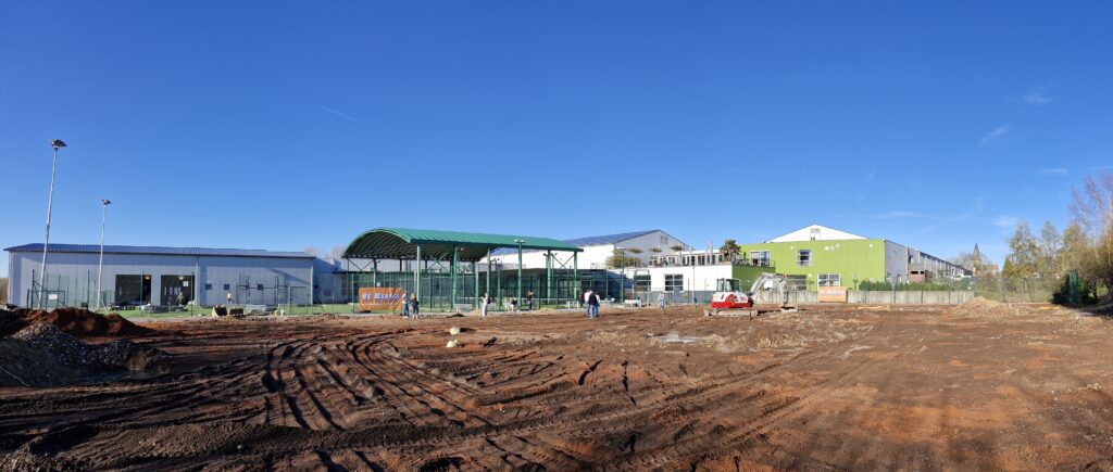Momenteel is het nog een omgewoeld terrein, maar de afdeling Red Sport Padel van de firma Herwebo uit Zele zit al meteen een week voor op het werkschema. Projectleider is Tineke De Roover uit Opwijk en streefdatum van de opening is dus eind juni. Het beton dat het gebinte moet dragen is al gegoten.