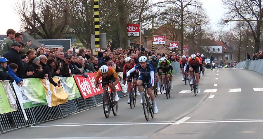Er werd overigens deftig gevlamd over de 165km. De gemiddelde snelheid van 43,87 km/uur spreekt voor zich. Een snoeiharde afvallingsrace werd het. Een groepje van negen renners wist zich los te rukken uit het peloton. Zeven renners lukten er nog in de sprong te maken naar de vluchters